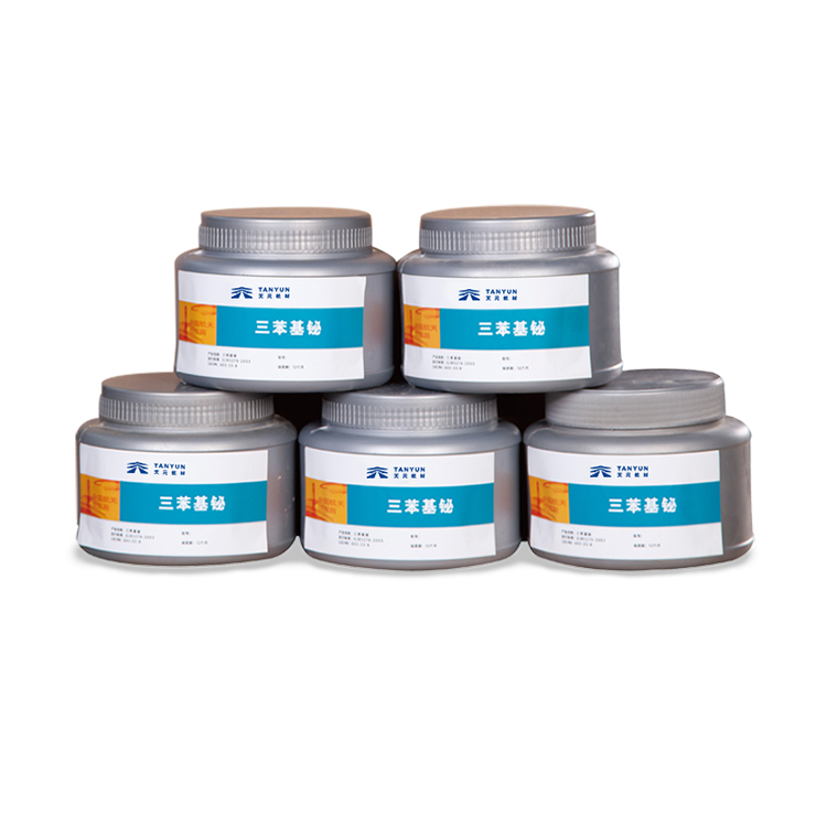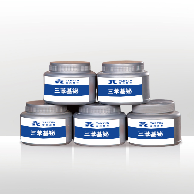2、用途:三苯基铋(TPB)用作高燃速丁羟推进剂的固化催化剂。TPB 可降低该推进剂的固化温度、缩短固化时间,而且对其加工性能和力学性能均无负面影响,TPB 的参考用量是推进剂总量的0.006%~0.05%,在 50 ℃固化时间为 7 天,也可用作乙炔聚合成环辛四锡的催化剂、甲醛聚合催化剂、聚环氯化物的熟化剂、其它某些单体聚合的催化剂等。